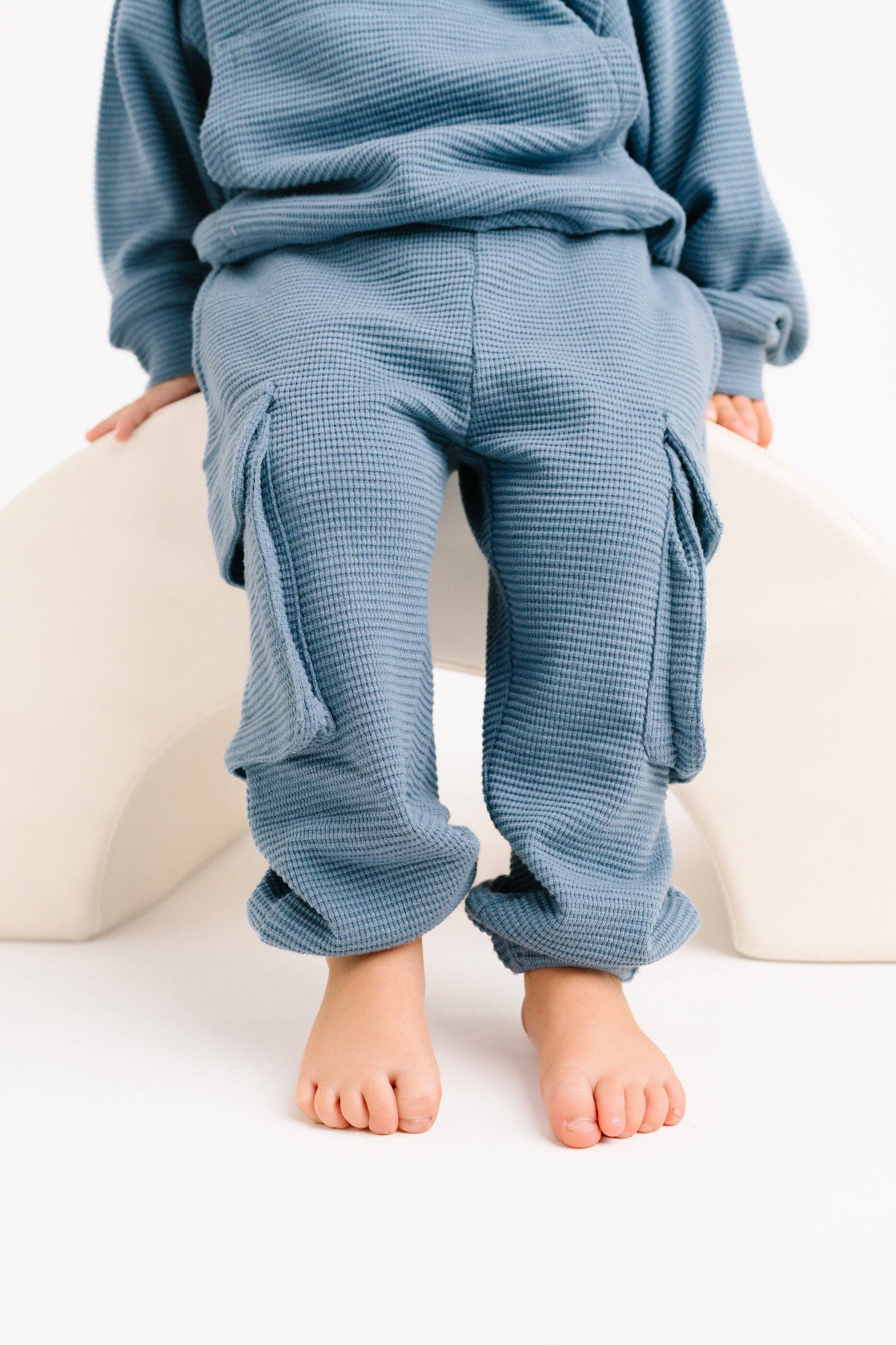 Our Dusty Blue Waffle Cargo Set from Little One Shop is a unique and trendy outfit. This top and pant set is designed with a modern touch, making it a fantastic addition to your child's wardrobe. With a commitment to quality and affordability, we ensure that this set is not only stylish but also comfortable for your little one.