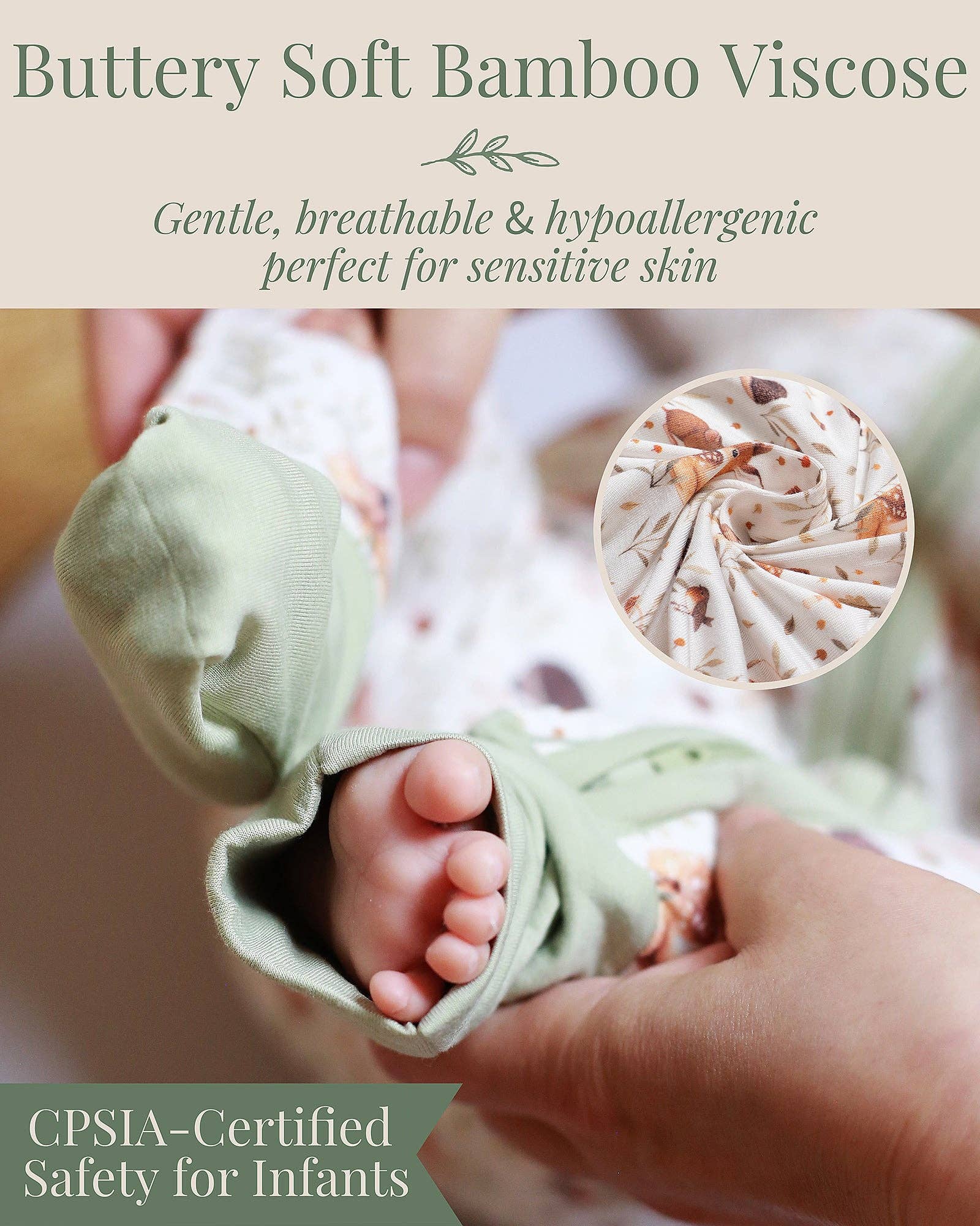 A beautiful baby shower or registry essential—this woodland print sleeper